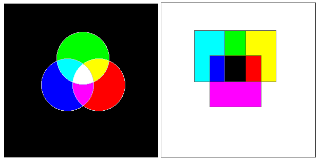 Fig. 1. Color mixing by addition (Left) and subtraction (right).